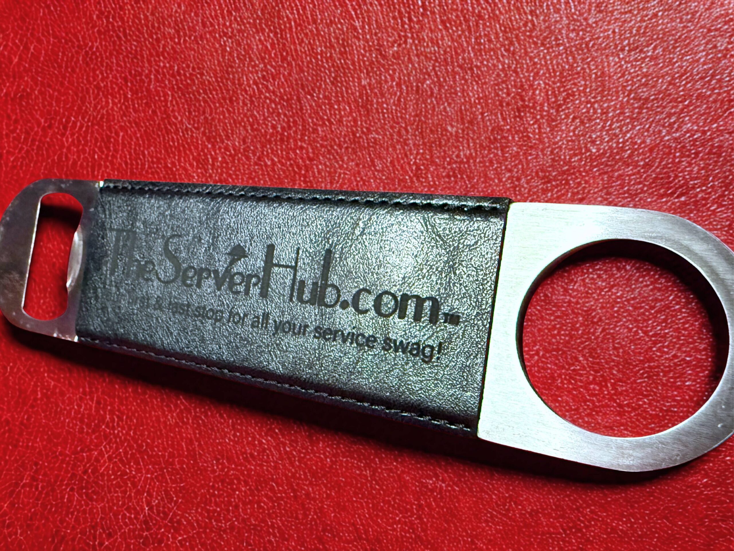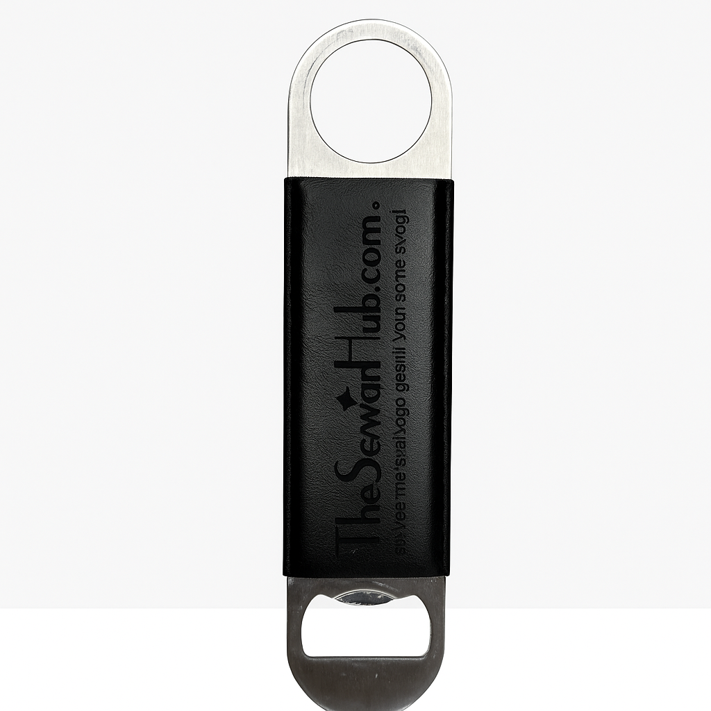 It is a stand-alone bottle opener. With a stylish and clean Faux leather grip it’s great to have and look professional while opening any bottled water or bottle beer.