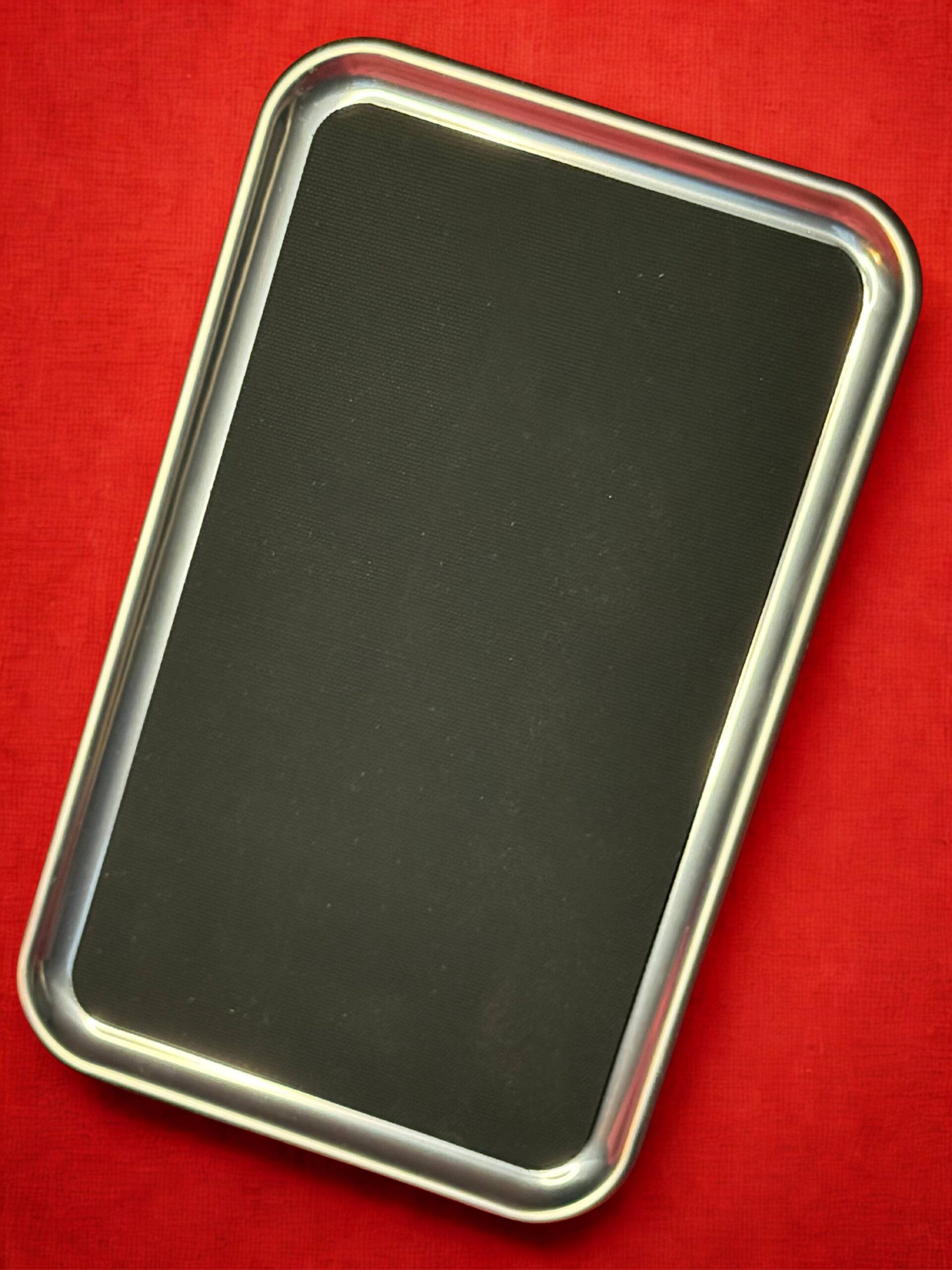 The Standard Server Tray is a personal server tray that the server would always have on their person. It is a mini sterling silver tray with a gripper mat to prevent glasses from moving around. It can hold up to three-pint glasses making running drinks for small parties a breeze, it acts as a great extender for handing drinks to hard-to-reach guest.
